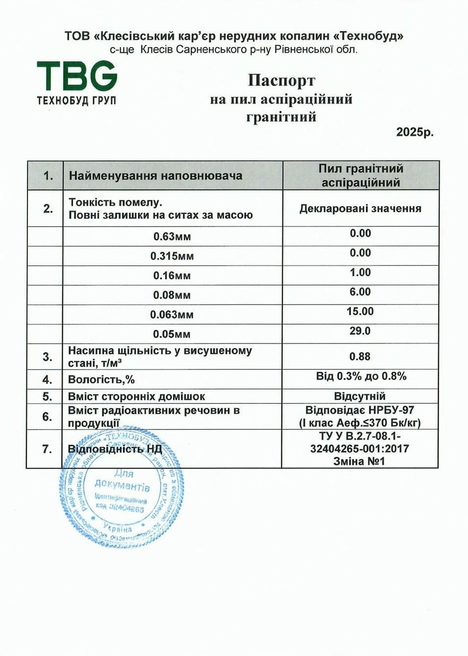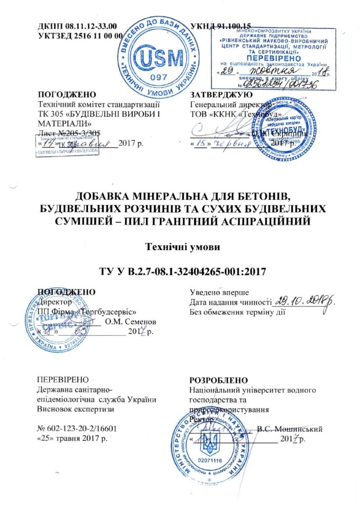 Technical conditions TU U В.2.7-08.32404265-0012017_granite aspiration dust_Klesiv quarry