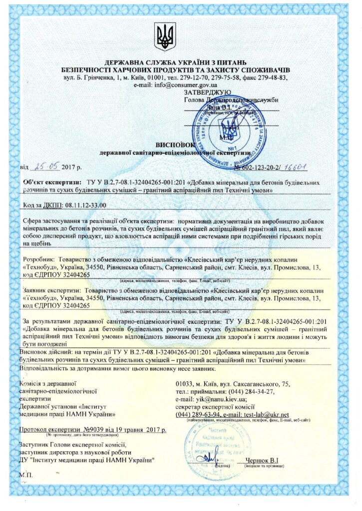 State sanitary & epidemiological examination report_granite aspiration dust_Klesiv quarry