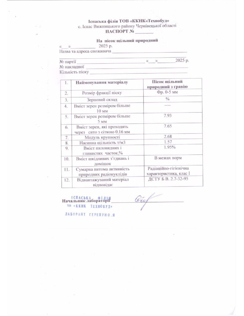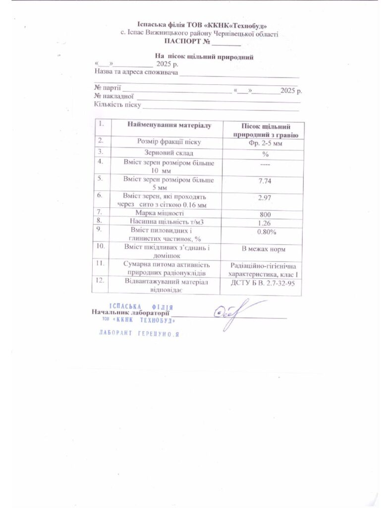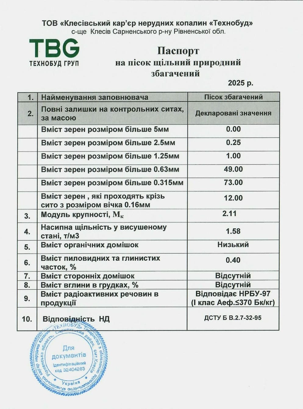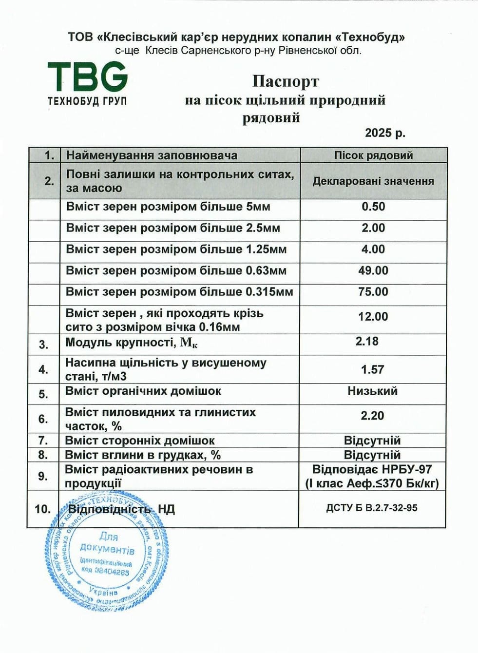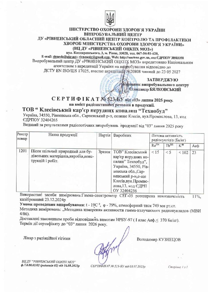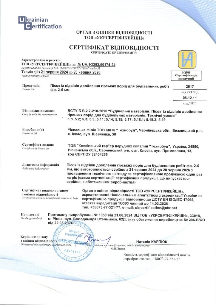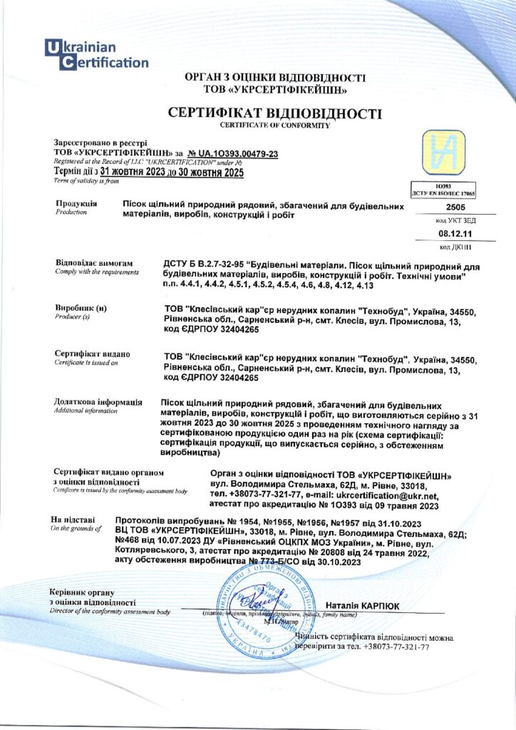 Conformity certificate DSTU Б В.2.7-32-95_sand_Klesiv quarry
